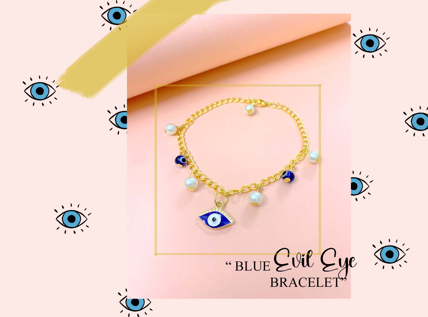 Golden White Evil Eye Golden Chain Charm Bracelet