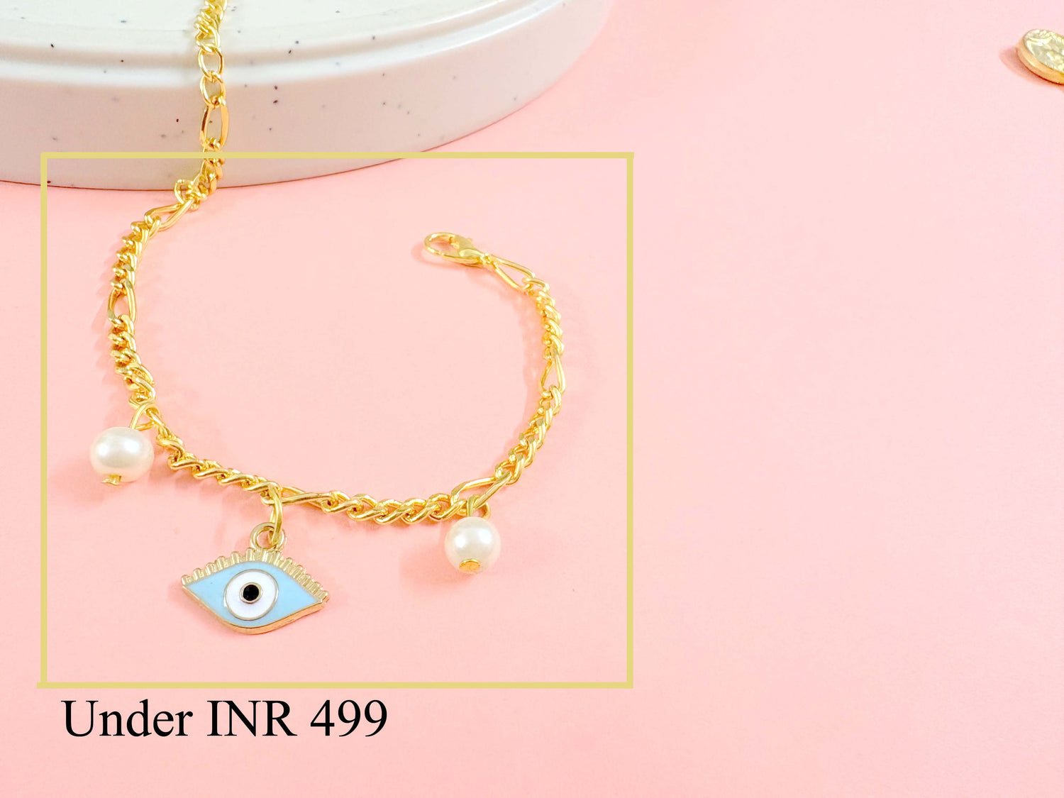Golden White Evil Eye Golden Chain Charm Bracelet