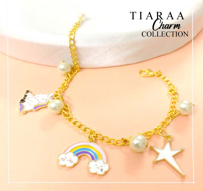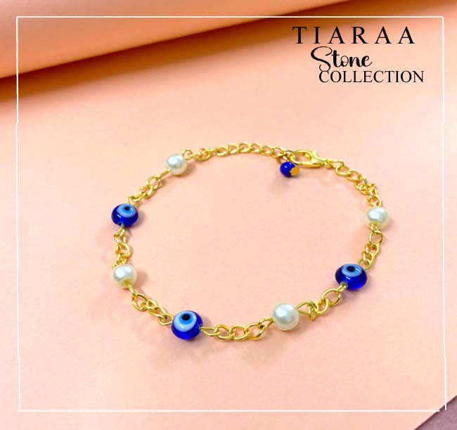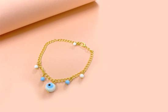 Golden White Evil Eye Golden Chain Charm Bracelet