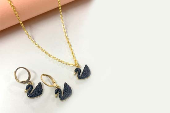Black Evil Eye Studded Stone Golden Charm Necklace